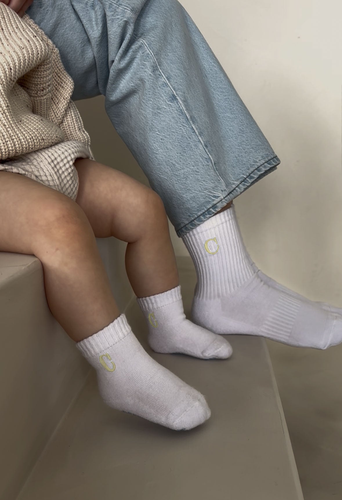 Match with your mini-me in Curve grip socks. Designed specially for their wobbly first steps and your shaky Pilates legs!