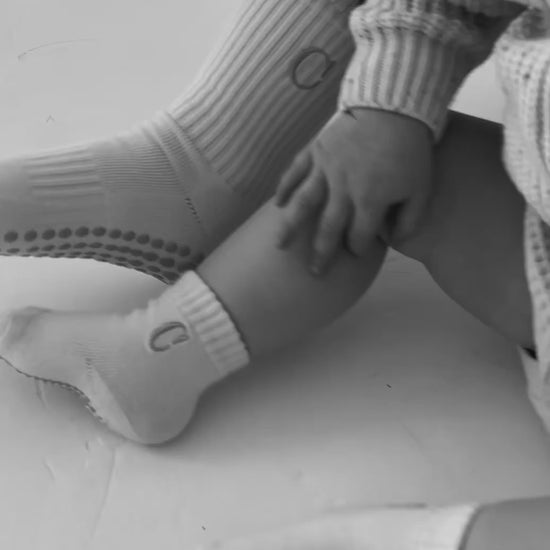 Match with your mini-me in Curve grip socks. Designed specially for their wobbly first steps and your shaky Pilates legs!